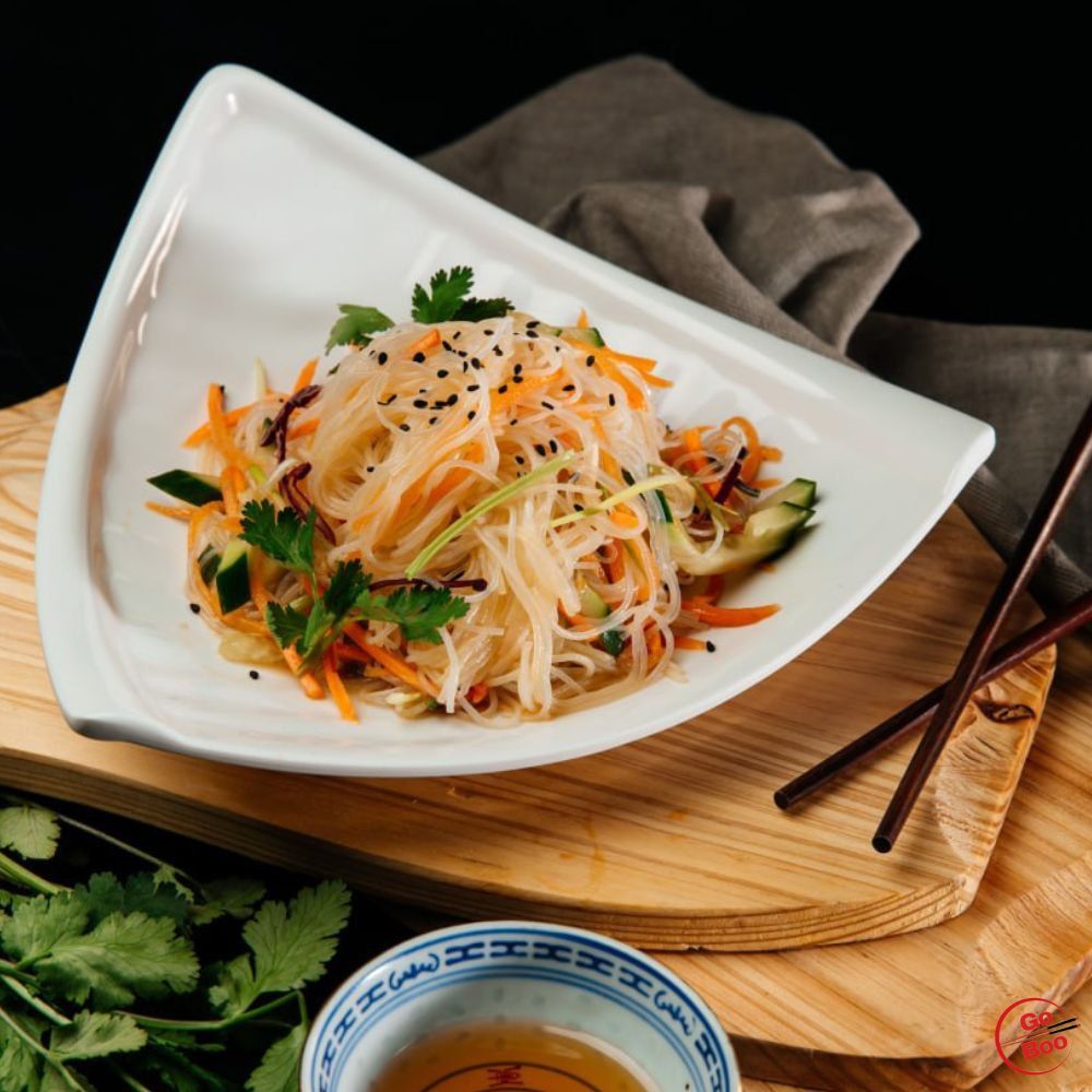 Морковь, свежий огурец, краснокочанная капуста, фунчоза, соус